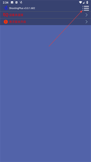 1、打開ShootingPlus應(yīng)用,點擊右上角的三條橫線菜單按鈕。