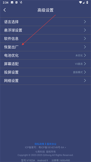 3、在高級設(shè)置頁面,點擊恢復(fù)出廠選項。