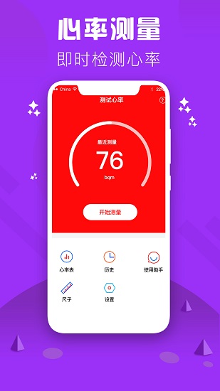 心率檢測儀使用您手機(jī)上的攝像頭和閃光燈獲取您指尖的血液循環(huán)圖像,采用一系列復(fù)雜算法準(zhǔn)確測量您的心率