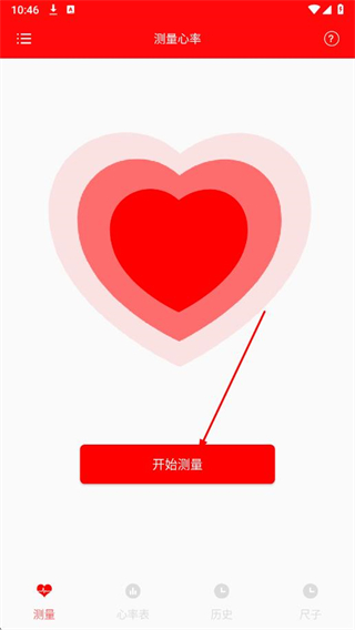 1、打開心率檢測儀APP,在測量頁面點(diǎn)擊開始測量按鈕。