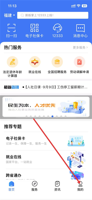 1、打開掌上12333,點擊底部導航欄最右側我的選項。