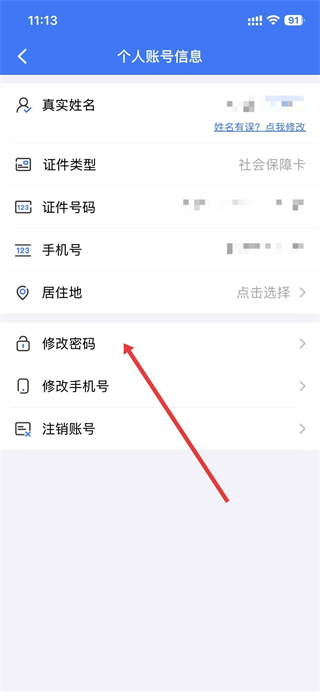 3、進入個人賬號信息頁面后,找到并點擊修改密碼選項。