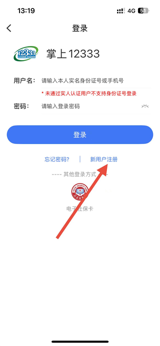 3、進入登錄頁面后,點擊新用戶注冊選項。