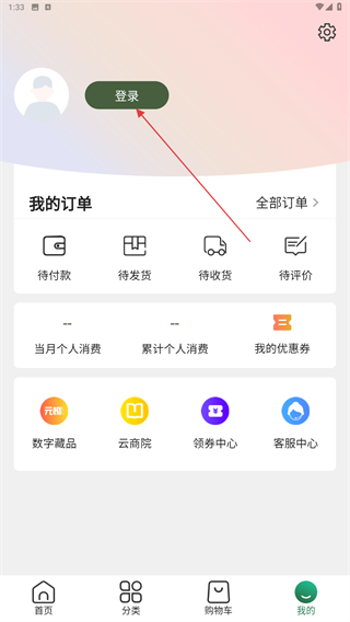 2、進入個人主頁內(nèi),點擊上方登錄的按鈕。