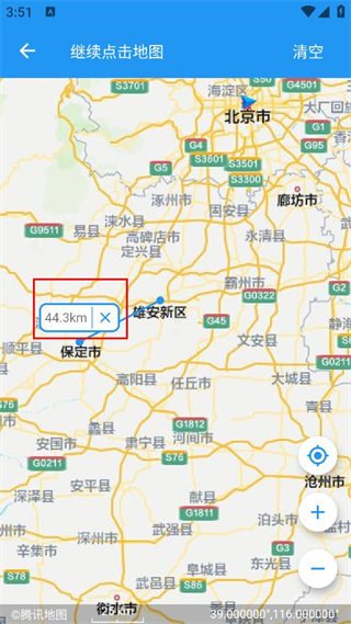 4、兩點(diǎn)確定后,即可查看兩地之間的距離。