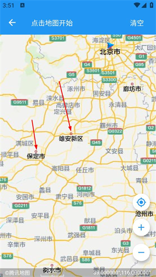 3、在測(cè)量距離頁面,點(diǎn)擊地圖上的起點(diǎn)位置,再點(diǎn)擊終點(diǎn)位置。