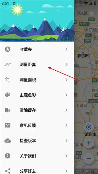 2、在功能列表中,點(diǎn)擊“測(cè)量距離”進(jìn)入測(cè)量距離頁面。