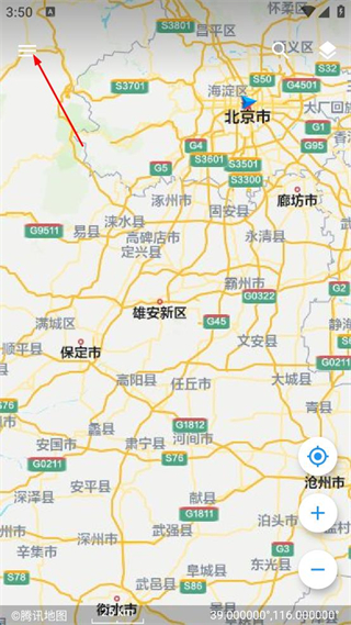 1、打開地圖類軟件,點(diǎn)擊左上角菜單按鈕,彈出功能列表。