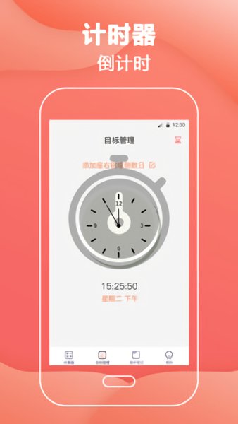 可設(shè)置倒數(shù)日,考研倒計(jì)時(shí)、高考倒計(jì)時(shí)、考試倒計(jì)時(shí)、期末倒計(jì)時(shí),重要工作日程會(huì)議倒計(jì)時(shí),為你的日常行程及目標(biāo)設(shè)置時(shí)間;還可進(jìn)行時(shí)間段的倒計(jì)時(shí)提醒,不論是運(yùn)動(dòng)、閱讀還是鍛煉自己的自律性,都會(huì)成為你很好的日常目標(biāo)管理工具。