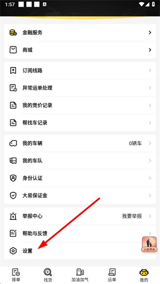 1、在大易司機(jī)app貨源大廳頁(yè)面點(diǎn)擊我的選項(xiàng),進(jìn)入個(gè)人頁(yè)面。
