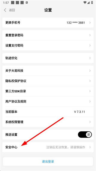 3、在設(shè)置頁(yè)面點(diǎn)擊安全中心選項(xiàng),彈出溫馨提示框。
