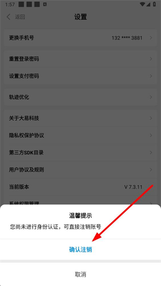 4、在溫馨提示框中點(diǎn)擊確認(rèn)注銷(xiāo)按鈕,即可完成賬號(hào)注銷(xiāo)操作。