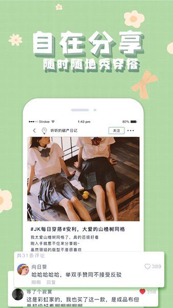 1、非常不錯(cuò)的一個(gè)交流的社區(qū)構(gòu)建,讓喜歡穿搭的朋友們都是可以在此來得到一個(gè)快速的內(nèi)容分享;