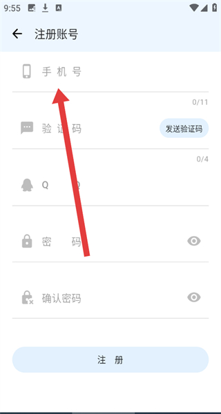 4、跳轉(zhuǎn)到注冊(cè)賬號(hào)頁(yè)面時(shí),依次填寫(xiě)對(duì)應(yīng)輸入框的注冊(cè)信息后,點(diǎn)擊注冊(cè)按鈕完成注冊(cè)。