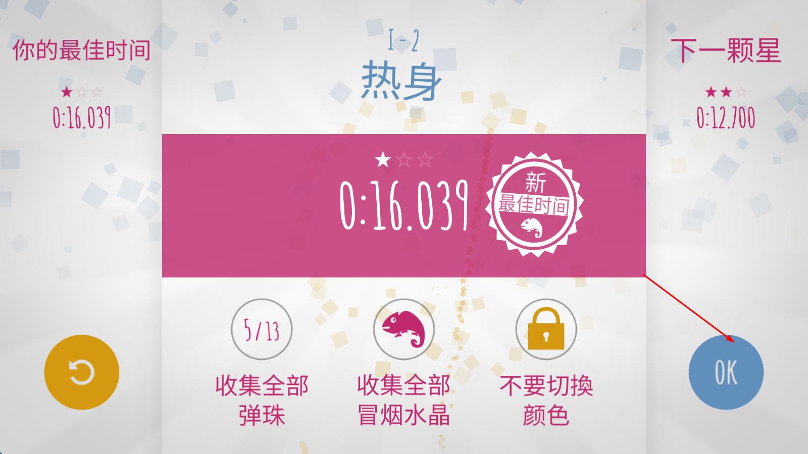 3、當(dāng)成功適應(yīng)快節(jié)奏顏色切換,完成收集水晶、不變色等特殊目標(biāo)后,可挑戰(zhàn)關(guān)卡最快通關(guān)時(shí)間,爭取三星評(píng)價(jià),解鎖更具難度的后續(xù)關(guān)卡。