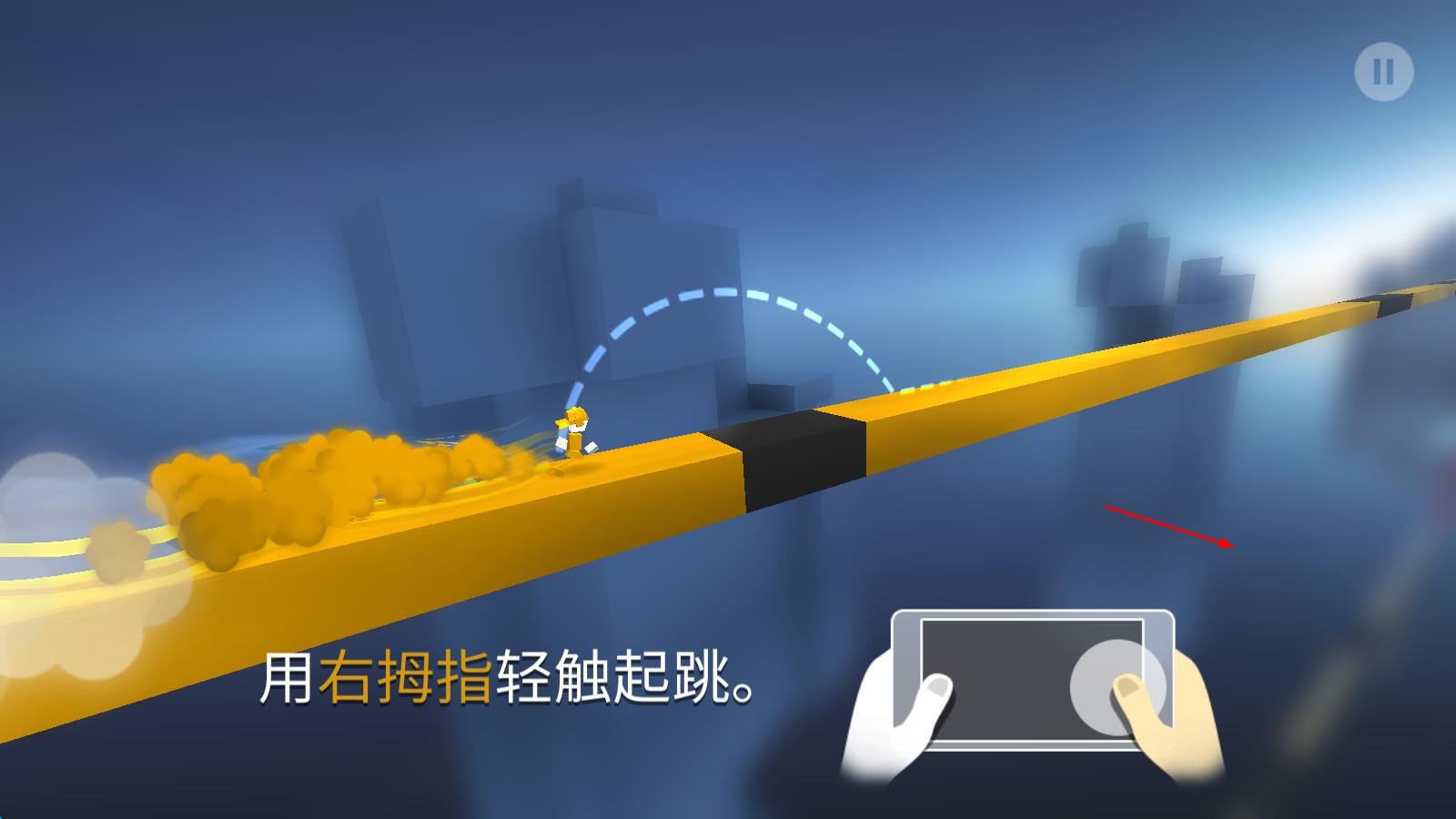 2、游戲中途遇到紅黃平臺(tái)高頻交替時(shí),需緊盯地面顏色變化,快速?zèng)Q策切換時(shí)機(jī);若想提速,可在確保不失誤的前提下長按跳躍,同時(shí)留意收集沿途大小水晶。