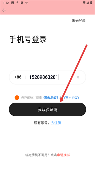 3、輸入手機號碼,勾選協(xié)議后點擊“獲取驗證碼”。