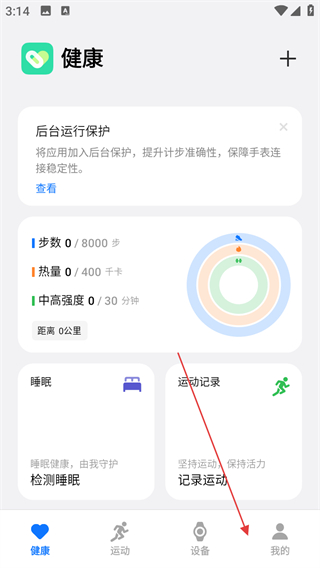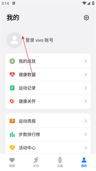 1、打開vivo健康APP,點擊底部導航欄我的。