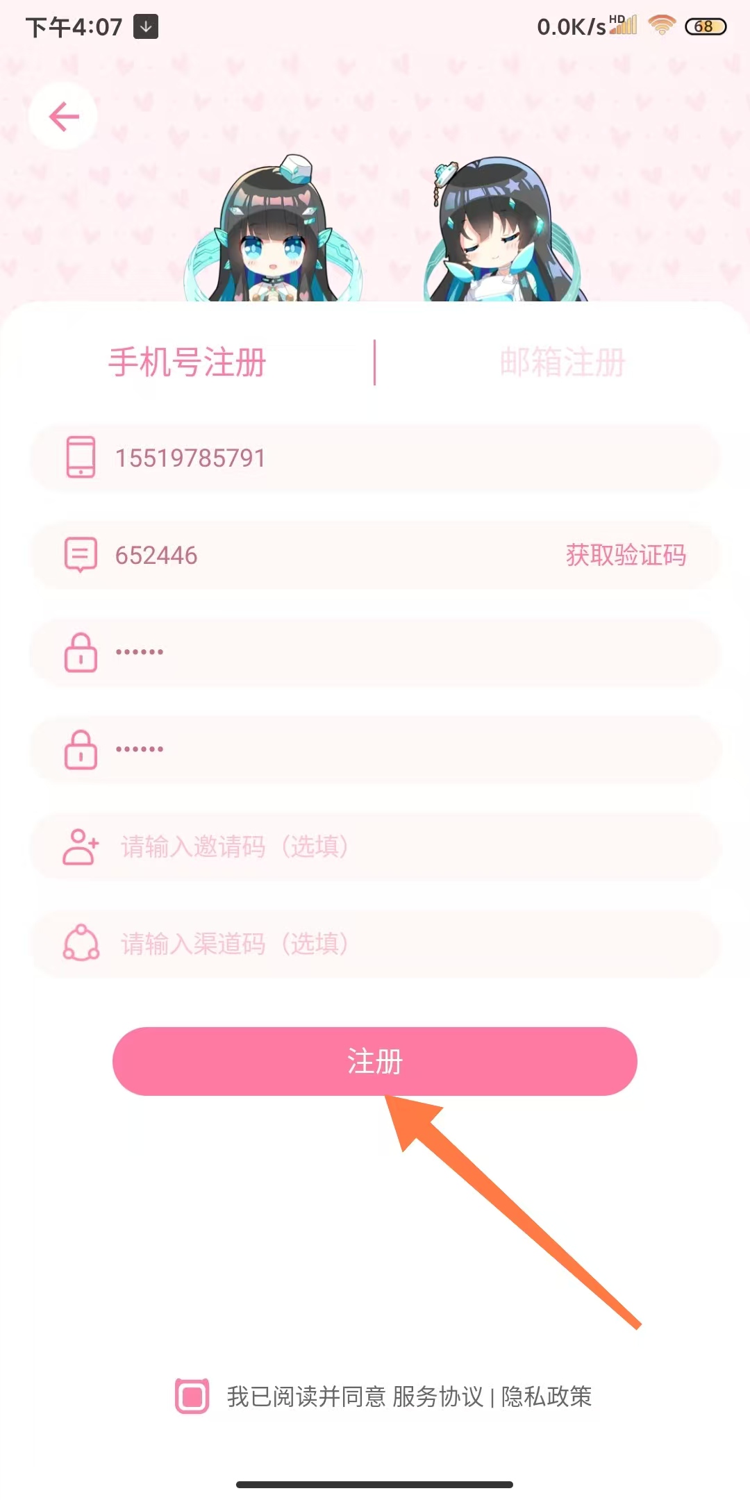 3、設(shè)置密碼并再次確認(rèn)密碼,勾選我已閱讀并同意服務(wù)協(xié)議和隱私政策。