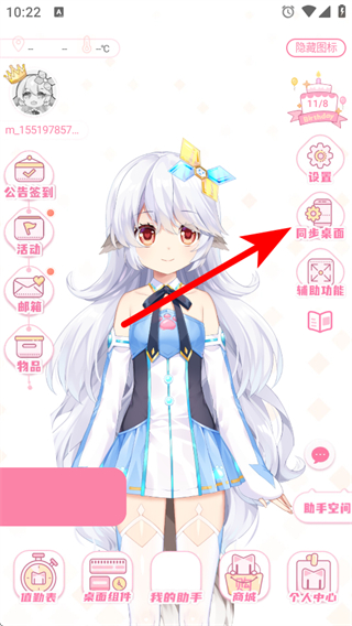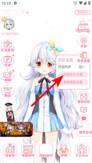 2、在同步桌面菜單中,點(diǎn)擊桌面助手設(shè)置選項(xiàng),進(jìn)入桌面助手設(shè)置頁面。