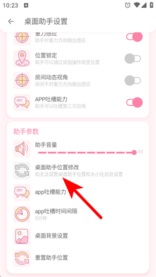 3、在桌面助手設(shè)置頁面,點(diǎn)擊桌面助手位置修改選項(xiàng),進(jìn)入對(duì)應(yīng)設(shè)置界面。