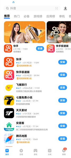 推薦、應(yīng)用、游戲、排行多種方式尋找你最喜歡的app