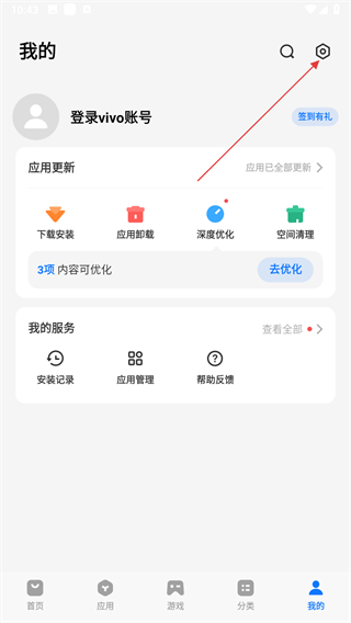 1、打開vivo應(yīng)用商店,點擊右上角設(shè)置圖標。