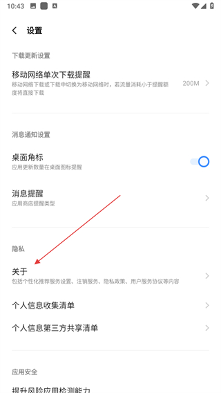 2、進入設(shè)置頁面之后,找到并點擊關(guān)于選項。