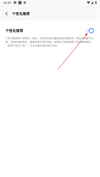 4、在個性化推薦頁面,關(guān)閉個性化推薦開關(guān)。