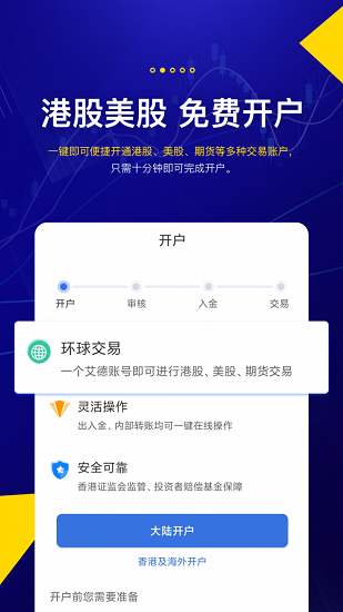 只需一個艾德賬號即可輕松買賣各式港股、美股及期貨等金融產(chǎn)品。