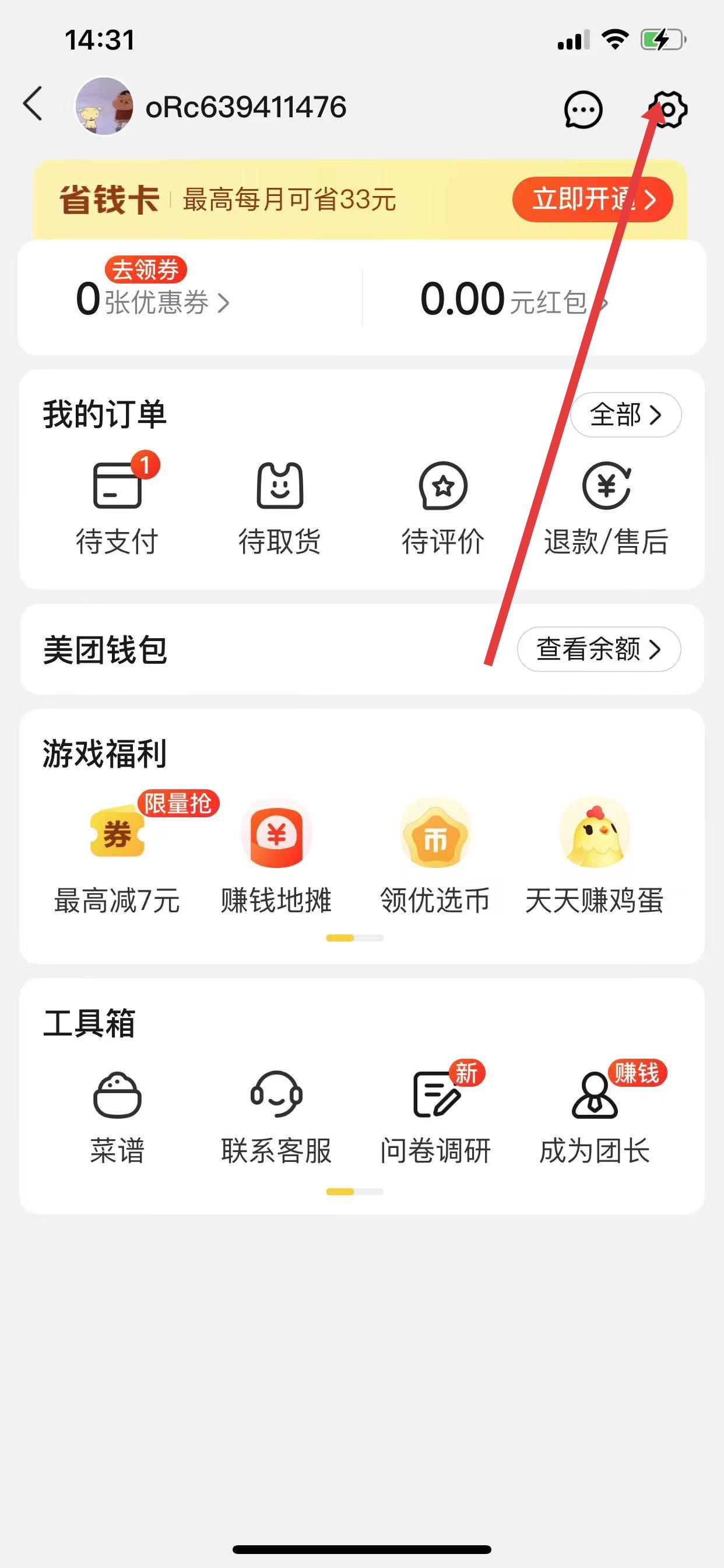 1、打開美團優(yōu)選APP,點擊右上角我的按鈕,進入個人頁面。
