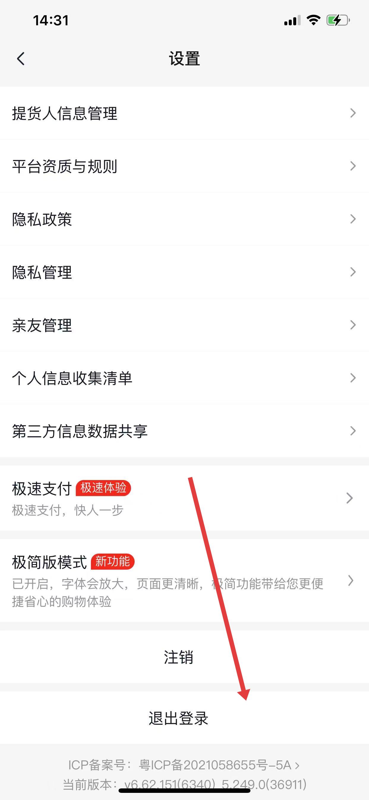 3、在設置界面下滑至底部,點擊退出登錄,即可登出當前賬號。