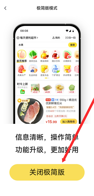 4、在頁面點擊關閉極簡版按鈕,即可完成極簡模式的關閉操作。