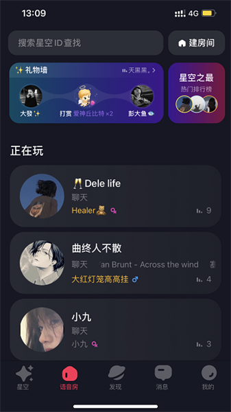 2.”語音房“界面是專門給語音交友的用戶打造的板塊,用戶可以和感興趣的朋友連麥聊天,開啟一段暢快的聊天對話;