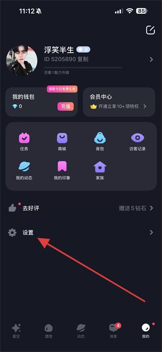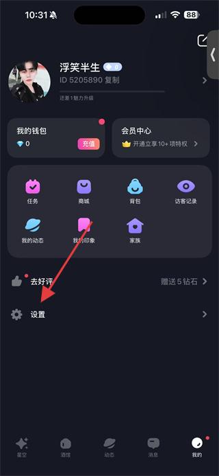 2、在個(gè)人頁面中點(diǎn)擊設(shè)置,進(jìn)入功能設(shè)置頁面。