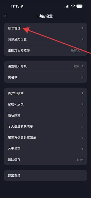 3.進(jìn)入功能設(shè)置界面后,點(diǎn)擊賬號管理選項(xiàng)。