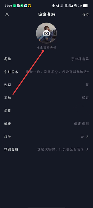 3、在編輯資料頁面點(diǎn)擊點(diǎn)擊替換頭像選項(xiàng)。