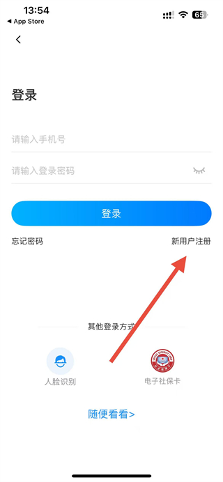 3、在登錄頁面中,點(diǎn)擊新用戶注冊選項(xiàng)進(jìn)入注冊頁面。