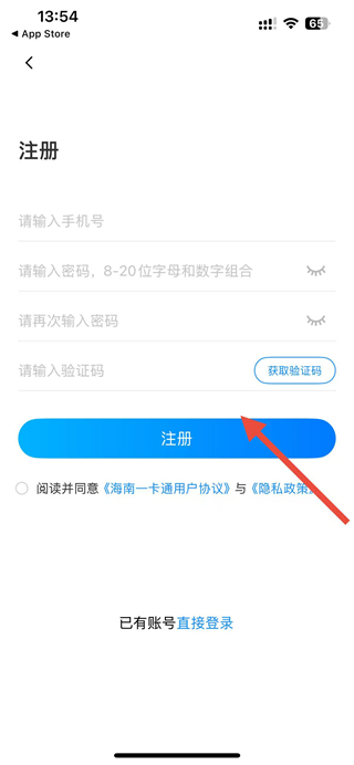 4、在注冊頁面中,依次輸入手機(jī)號(hào)、設(shè)置密碼并再次輸入確認(rèn),獲取并輸入驗(yàn)證碼后點(diǎn)擊注冊完成賬號(hào)注冊。