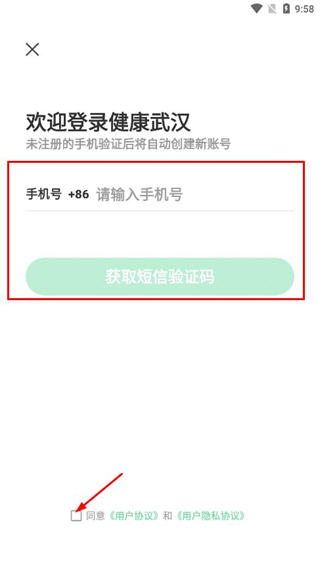 3、輸入手機(jī)號(hào),勾選用戶協(xié)議和用戶隱私協(xié)議,然后點(diǎn)擊獲取短信驗(yàn)證碼。