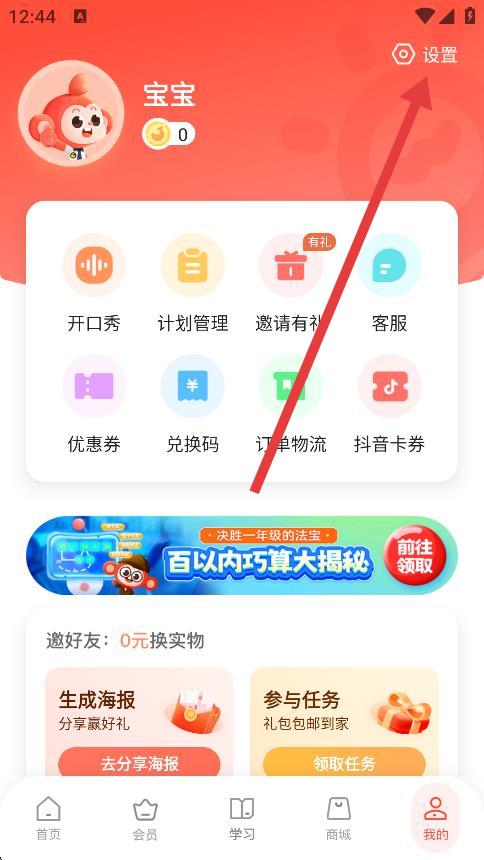 1、打開學(xué)而思小猴語文app,點(diǎn)擊底部導(dǎo)航欄我的選項(xiàng)。