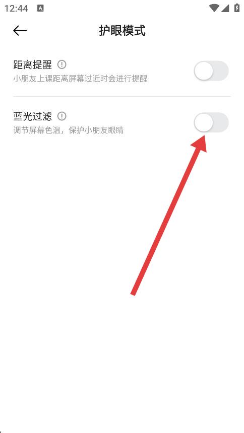 4、找到藍(lán)光過濾選項(xiàng),點(diǎn)擊開關(guān)按鈕將其開啟,即可開啟護(hù)眼。