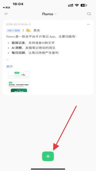 1、打開flomo浮墨筆記APP,在首頁內(nèi)點擊正下方+號的按鈕。
