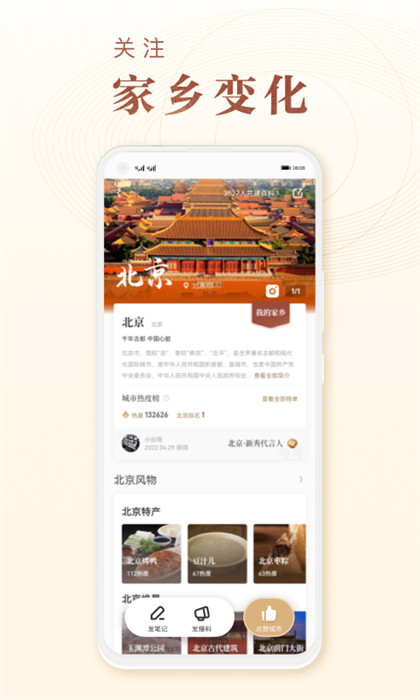 這里以城市為維度聚合了風(fēng)物內(nèi)容,你可以在這里看到你的家鄉(xiāng)或者你向往的城市為它點(diǎn)贊助力,讓更多的人看到它。