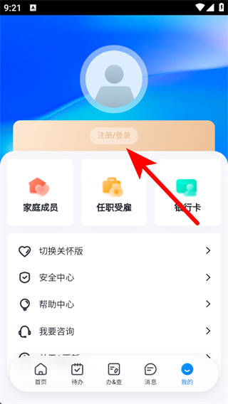 2、在個(gè)人功能操作頁面,點(diǎn)擊注冊(cè)/登錄的區(qū)域,進(jìn)入登錄大點(diǎn)界面。