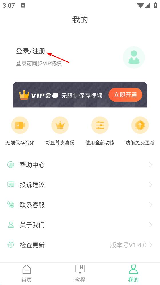 2、在“我的”頁(yè)面,點(diǎn)擊“登錄/注冊(cè)”按鈕。