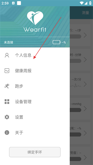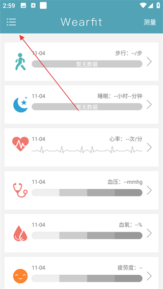 1、打開Wearfit APP,點(diǎn)擊左上角三條橫線的菜單圖標(biāo)。