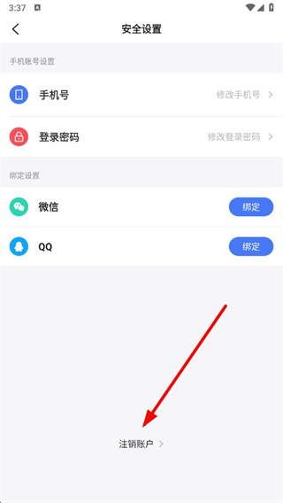 3、在安全設(shè)置頁面,點(diǎn)擊注銷賬戶選項(xiàng),進(jìn)入注銷賬戶風(fēng)險(xiǎn)說明頁面。