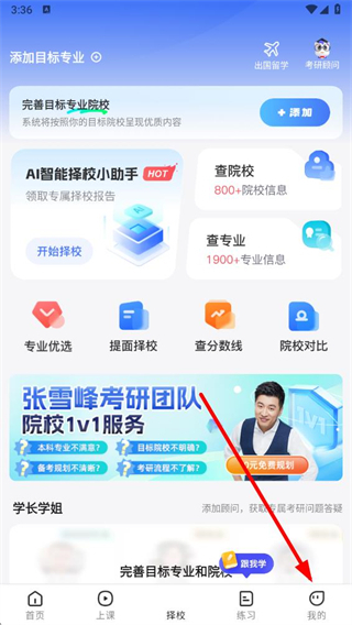 1、在研途考研首頁,點(diǎn)擊右下角我的,進(jìn)入個(gè)人頁面。