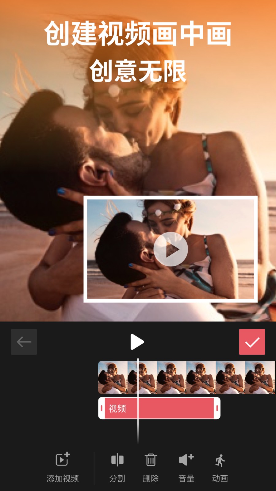 -可以將多個視頻合在一起,視頻中疊加視頻。